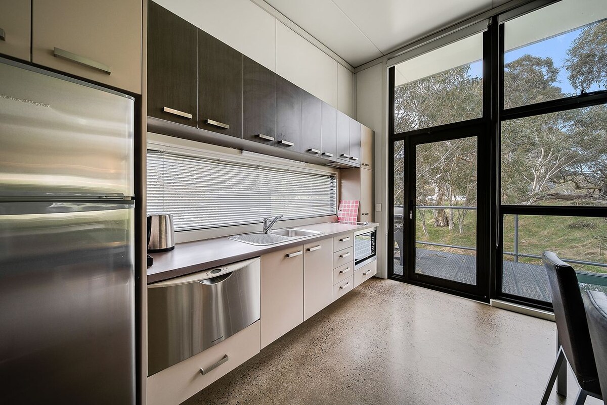Newly built Eco chalet 'The Glades' set high up and amongst the candlebark trees. Only 7km drive to Jindabyne town & 35mins to snowfields. 50 acres to explore with abundant wildlife, beautiful old trees, granite boulders and native grasses. 500m of Mowamba River access where platypus and trout abound. Peaceful and private. Perfect base for your skiing/ snowboarding, mountain biking, fishing or hiking holiday. Relax, unwind, recharge. 7KW EV charger - available in shared location near chalets.