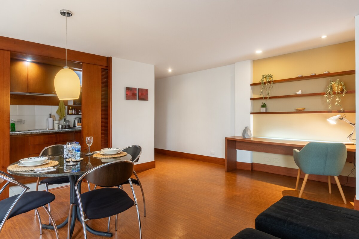 Njut av en lugn och central lägenhet på 37 meter med allt du behöver för att ha en lugn vistelse i Bogotá. Beläget några steg från den amerikanska ambassaden, Corferias, AGORA Convention Center, Bogotá Court, Attorney General's Office, CAN, Gran Estación, bland andra. 20 minuter från El Dorado flygplats, 10 minuter från transportterminalen. Den ligger på fjärde våningen. Byggnaden har en hiss.