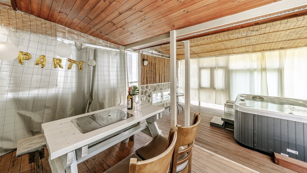 I anslutning till många turistattraktioner i Seoraksan, Sokcho Beach och Sokcho/Yangyang är detta ett duplexrum med en liten terrass där du kan få en vacker inredning och vila. Utomhusspaet utanför rummet erbjuder värdefulla minnen av det blå Donghae från centrum. Det finns också en grillplats bredvid spaet, och gratis frukost tillhandahålls för gästerna. Standardantalet är 2 och det maximala antalet personer är 4, vilket är det rekommenderade utrymmet för par och små familjegäster:)