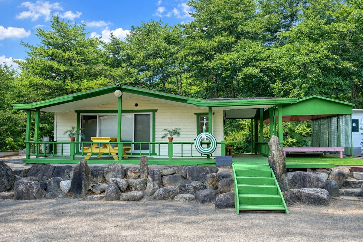 Detta är en 30 pyeong privat stjärnborste pensionat i skogen intill havet. 3 rum, vardagsrum, 2 toaletter, badrum, kök, utrymme för upp till 7 personer, 5 minuters promenad till Seorak Beach, Sokcho City, Daepo Port, Naksan Temple. Som en bekvämlighetsanläggning ligger Ganghyeon Hanaro Mart Main Store 3 minuter med bil, Naksan Branch ligger 2 minuter bort och Yangyang City Sokcho City ligger 10 minuter med bil. Du kan ha en ping-upplevelse på Yangyang surfplatser som Mulchi och Seorak Beach. Efter en resa till havet kan du koppla av i en lugn tallskog stuga och se stjärnorna du normalt inte kunde se. Sovrummet är säng 3. Köket kan enkelt lagas, men avstå från att äta mat som luktar, särskilt snökrabba räkor. Du kan äta vid matbordet för 6 personer på altanen på bakgården. Grillutrustning finns. Du måste förbereda en separat kolgrill. Koppla av med hela familjen i denna lugna Baysol Pension, nära till havet och omgiven av skogar.