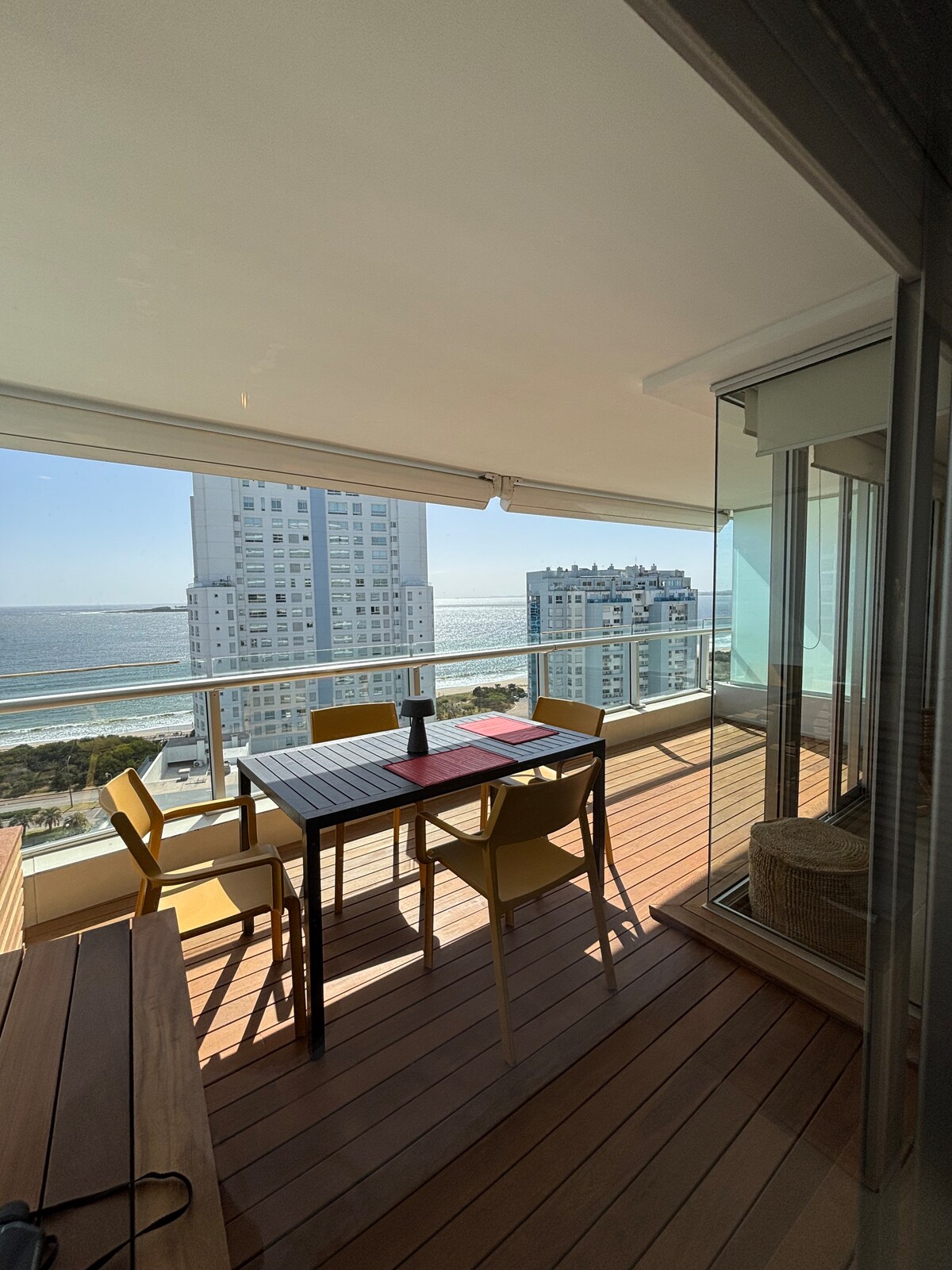 Location, location,location. Spectacular sea view. Very comfortable and cozy apartment in the center of punta del Este. 2 blocks from the beach. Maid clean every day and you just relax. Next to restaurants, casino, shops. 3 blocks of the bus terminal. Parking Included. AirConditioner since 2021 New kitchen and bathroom since Ago 2025