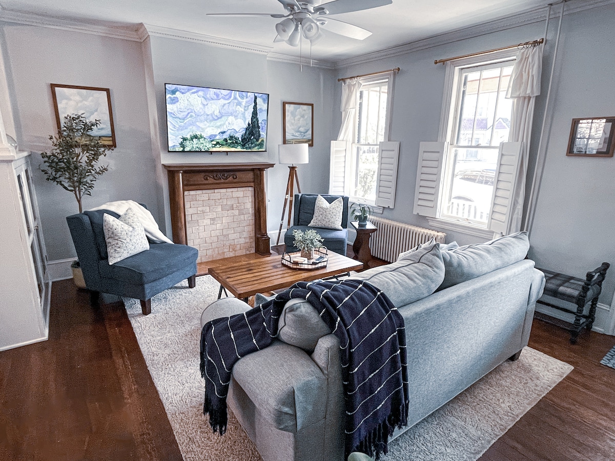 Du har anlänt till historiska Durrow House! Mandra nerför en av de vackraste trädkantade gatorna i Lambertville, och du kommer att befinna dig en kort promenad från allt som staden har att erbjuda. En idealisk tillflyktsort, vårt boende har 3 ljusa och vackert kurerade sovrum och ett uppdaterat fullt badrum. De rymliga vardagsrummen och matplatserna är härliga och avkopplande. Njut av en sprakande eld, lyssna på skivor eller sitt ute på den soliga verandan eller i den pittoreska trädgården. Vi ser fram emot att vara värd för dig!