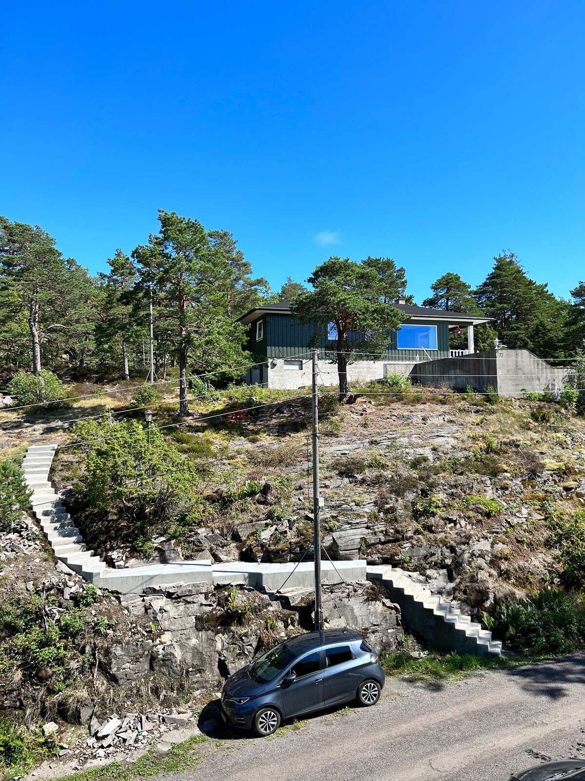 Nära staden i Sandefjord och fortfarande känner du att du bor i naturen. Gratis parkering utanför lägenheten. Busshållplatser 2 minuters promenad från lägenheten. Du kommer att se fjorden från fönstren och båtarna till Sverige. Det tar 8 minuter att köra till Sandefjord, 12 minuter till Larvik. Torp flygplats ligger 15 minuter bort. Sätt på dig dina vandringskängor och gå direkt på vandringsleden och använd kyststien. Ny 65 tums TV och höghastighetsinternet. När du är utomhus finns det märkbar trafik som passerar.
