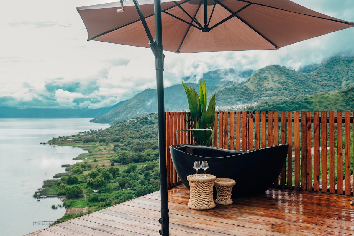 Välkommen till vår extraordinära A-ram inbäddad i den förtrollande Atitlansjön, Guatemala. Njut av en tillflyktsort där imponerande skönhet och lugn förenas. Bevittna hisnande panoramavyer av majestätiska vulkaner och den glittrande sjön, som erbjuder en bakgrund av naturliga underverk som ingen annan. Utforska den fängslande mayakulturen och dess traditioner och återvänd till din unika tillflyktsort, där elegant design och modern komfort samexisterar harmoniskt. Oförglömliga minnen väntar dig hos oss på AMATE Atitlan.