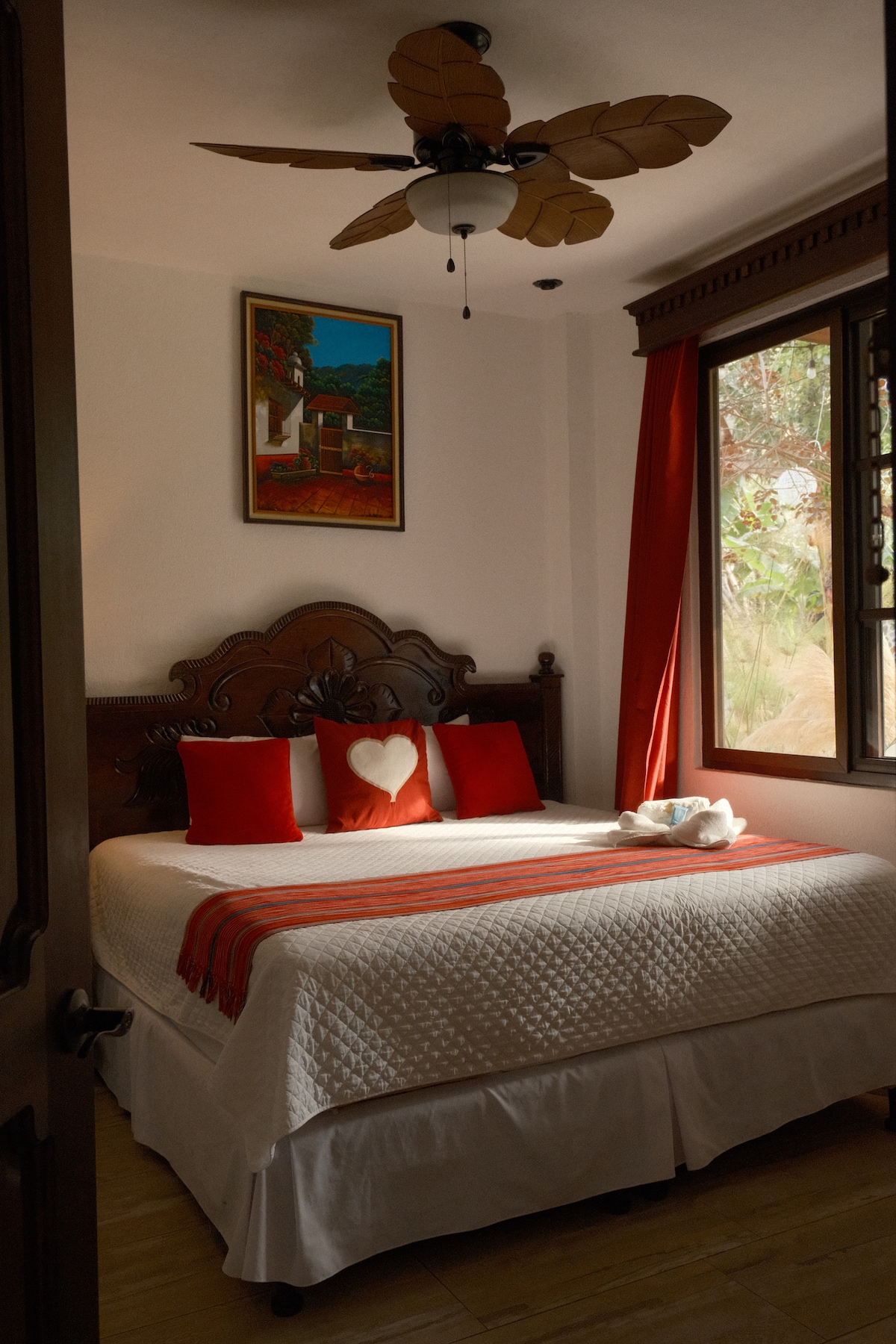 Koppla av i vårt mysiga, exklusiva badrum med en handgjord queensize-säng av lokala hantverkare och moderna apparater. Gå ut till den fantastiska utsikten över sjön Atitlán, frodiga trädgårdar och majestätiska berg, vilket skapar en fridfull oas för ultimat avkoppling. Njut av dina måltider i det delade upphöjda uteköket direkt framför rummet, som erbjuder en perfekt miljö för att njuta av det spektakulära landskapet. Njut av privat tillgång till vår pool, bastu, jacuzzi och privat brygga under hela din vistelse!