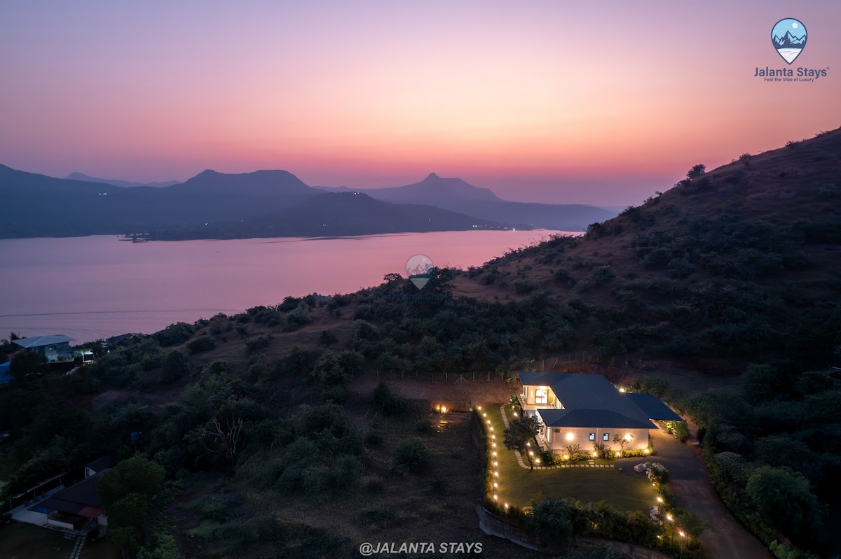 Tanmay Getaways ligger vid Mulshi-sjöns lugna stränder och blandar natur, komfort och avskildhet. Oavsett om du söker en fridfull helgresa eller en naturskön arbetsplats från var som helst, får vårt rymliga 3BHK lakehouse dig att känna dig som hemma med hisnande utsikt. ->Bara 45 km från Pune och 140 km från Mumbai, det är den perfekta snabba flykten. ->Njut av höghastighets Wi-Fi, fräscha sängkläder och ett välutrustat kök. -> Vi rymmer upp till 4 gäster i varje sovrum (extra avgift tillkommer).