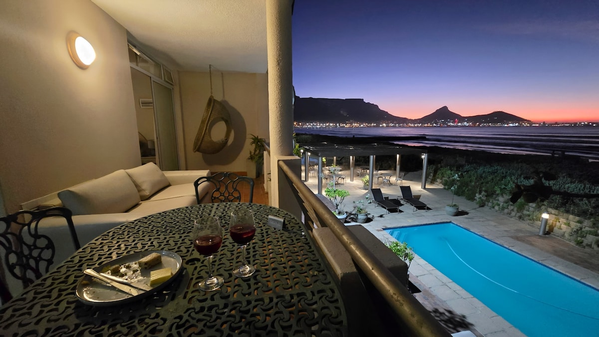 Välkommen till detta boende vid stranden. Den ljusa och öppna lägenheten ligger 8 km från Kapstadens centrum. Den rymliga lägenheten har direkt tillgång till stranden samt fantastisk utsikt över bordsberget och havet. Somna till ljudet och lukten av havet och vakna redo att njuta av poolen, stranden och Kapstadens många attraktioner. Har batteribackup för WiFi och TV under belastningsavskiljning. Följande TV-streamingtjänster ingår: AmazonPrime Video, Disney Plus.