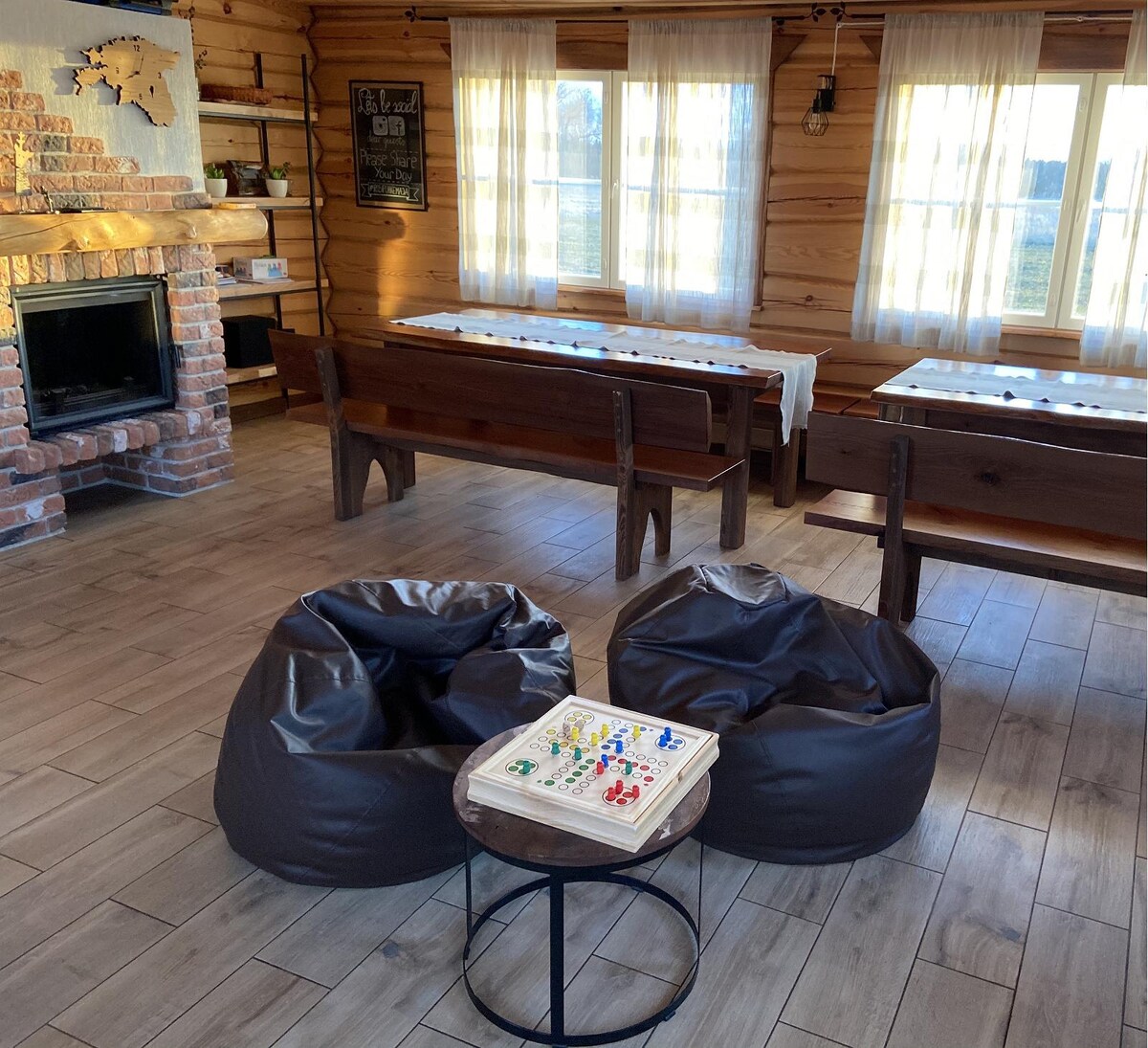 Du har en hel stuga på vår gård där du kan njuta av en rustik upplevelse. Läget ligger mitt i naturen, där du kan höra mycket fågelsång, se hästar, får. Du kan njuta av solnedgången i vår trädgård där ditt boende ligger. Vi erbjuder en bra frukost mot en extra avgift (8 euro), som är gjord av produkter från vår gård. Istället för ett badrum kan du tvätta dig i en bastu. För att spara vatten använder vi en komposttoalett — oroa dig inte, den är trevlig och luktfri.