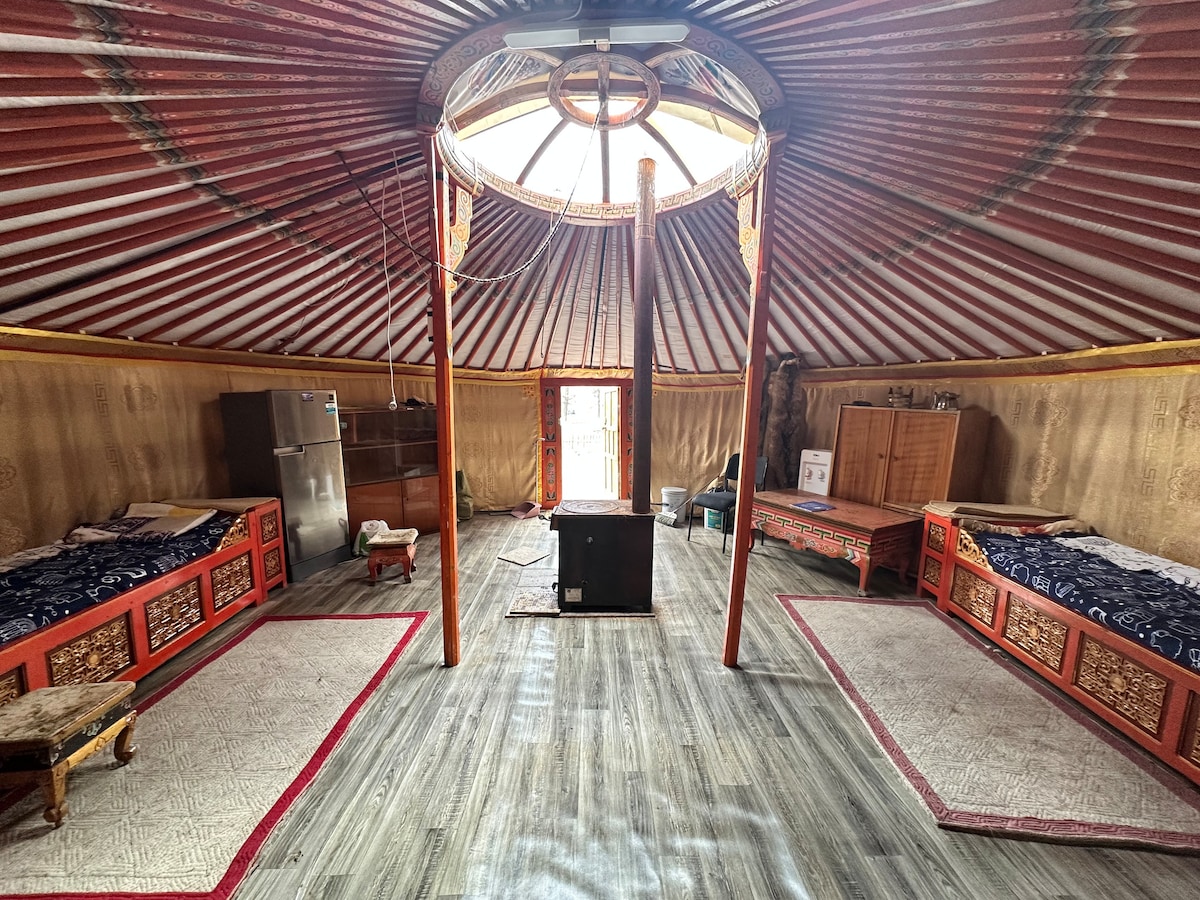 Vårt mongoliska nationella gerhus ligger nära staden. Du måste åka bil 50 minuter och nå mongoliska nationella ger. Vi har en liten gård. Om du kommer kommer kommer du att bo i antika mongoliska traditionella Ger med nomadisk familj och känna till det verkliga mongoliska livet runt underbar natur. Jag plockar alltid upp mina gäster.