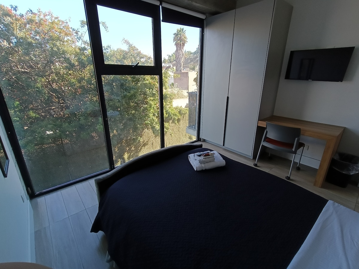 Bekvämt 1 sovrum i ett säkert, lugnt, centralt område med privat parkering. Det har bekvämligheter och tjänster; Amazon Prime och Wi-Fi. Du hittar ansluten till alla sevärdheter i Tijuana och Rosarito, utmärkt läge mellan båda kommunerna; 15 minuter från Zona Río, Centro y playa de Tijuana, 15 minuter från turistområdet Rosarito maneiendo, 25 till konsulatet och flygplatsen.