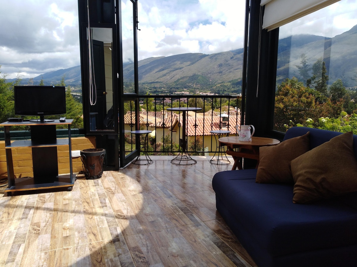 Vackert hem i bergen i Villa de Leyva, bara en kort taxiresa eller gå in till centrum av stan med bagage. "Casa Van Gogh" är omgivet av naturen och har en fantastisk utsikt. Den är perfekt för dem som njuter av en lugn atmosfär bort från verksamheten och buller i staden. Lämpligt utrymme för digitala nomader på grund av internethastigheten på 56,6 Mbps.