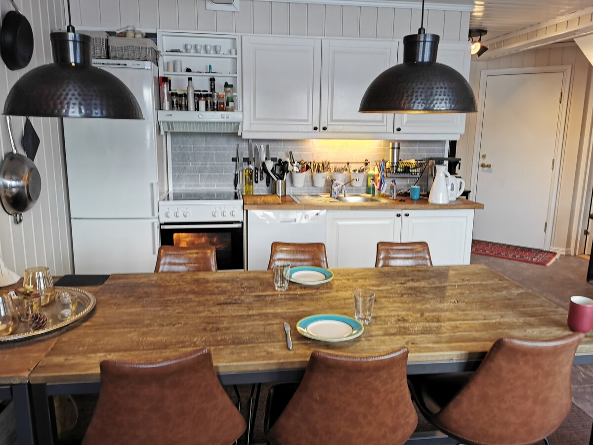 -Helt ny leilighet som inneholder: Gang med varmekabler -Stue med v.kabler og flott eikegulv og diverse designmøbler fra Norge, Danmark og Italia -Moderne og velutstyrt kjøkken med oppvaskmaskin, induksjon/ovn, kaffetrakter osv. - Soverom 1 har 180 dobbeltseng og rikelig med skapplass -Soverom 2 med familieseng 160 cm nede og 90 cm oppe og godt med skapplass. Stort bad med regnfalldusj vaskemaskin/tørk Eget tørkerom til tøy og støvler