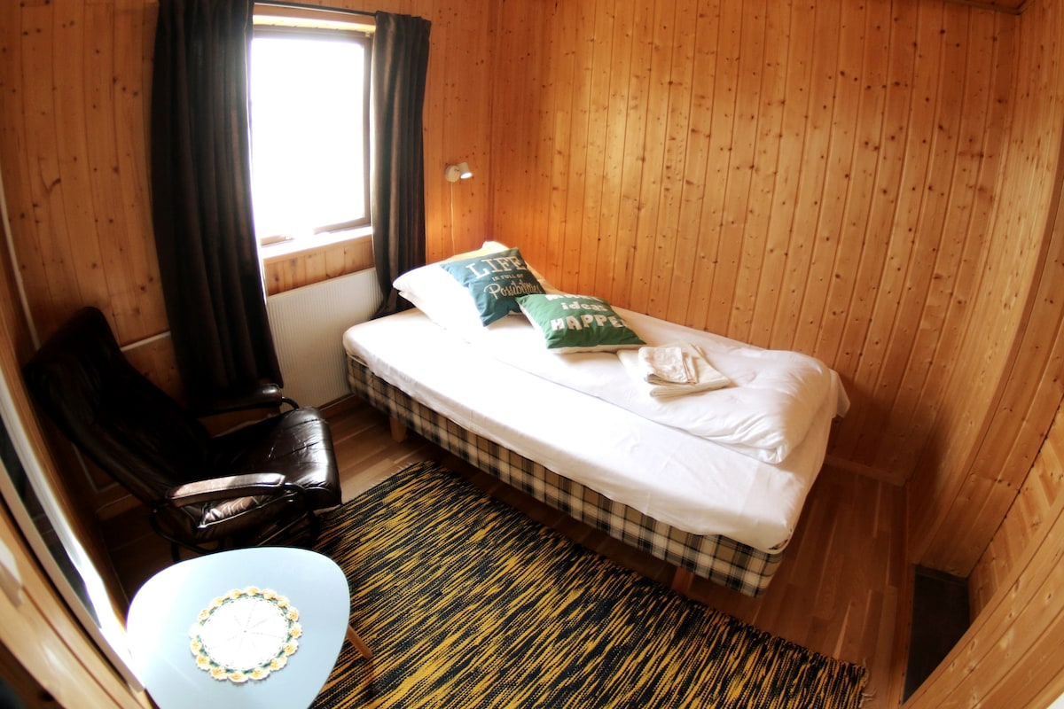 FANTASTISKT FÖR GRUPPER 10 - 15 Ta med hela familjen till detta fantastiska ställe med massor av utrymme för skojs skull både inom- och utomhus. Vi har totalt 18 sängar, öppen spis, TV-lounge, matrum, bastu och ett stort kök med all utrustning. Grillhus med bord samt sittplatser samt jordram med grus samt 14 platser. Detta rum är ett tvåbäddsrum med en dubbelsäng på andra våningen. Du får tillgång till eget badrum på samma våning Hör av dig, tillsammans väljer vi vilka rum som passar dina behov.