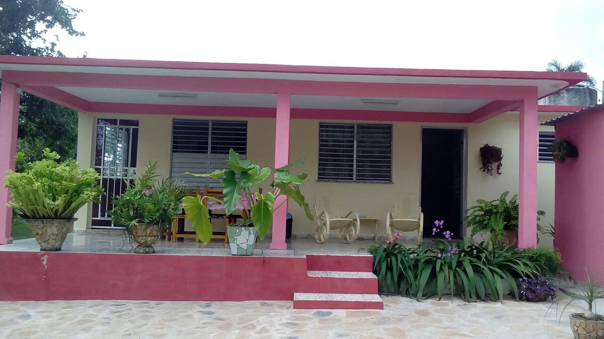 Vårt hus ligger inom Sierra del Rosario biosfärreservat i staden Soroa, en plats av högt värde av natur, historia och landskap, vi har oberoende ingång och utgång, rymligt och uppvärmt rum med 2 dubbelsängar, minibar, stort badrum med varmt och kallt vatten, fläkt, terrass, trädgård , pool och solområde. Huset har fruktträd på uteplatsen. Vi är bara 500 meter från Horizontes Soroa hotel.