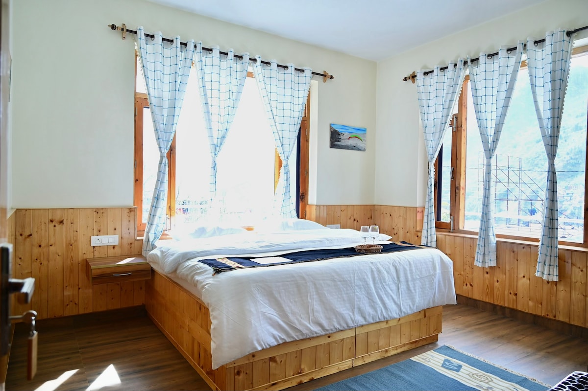 You'll love this unique and romantic escape in Jibhi Valley. Our Spacious and Lavish treehouse offers comfort of modern amenities and joy of nature. ★ Wooden & Glass Architecture ★ Panoramic view ★ Scenic Location ★ Wi-Fi ★ Power Backup ★ Food service ★ Bonfire area ★ Parking at property Please note, Breakfast, Room heaters, Bonfire & other services are exclusive of stay price.