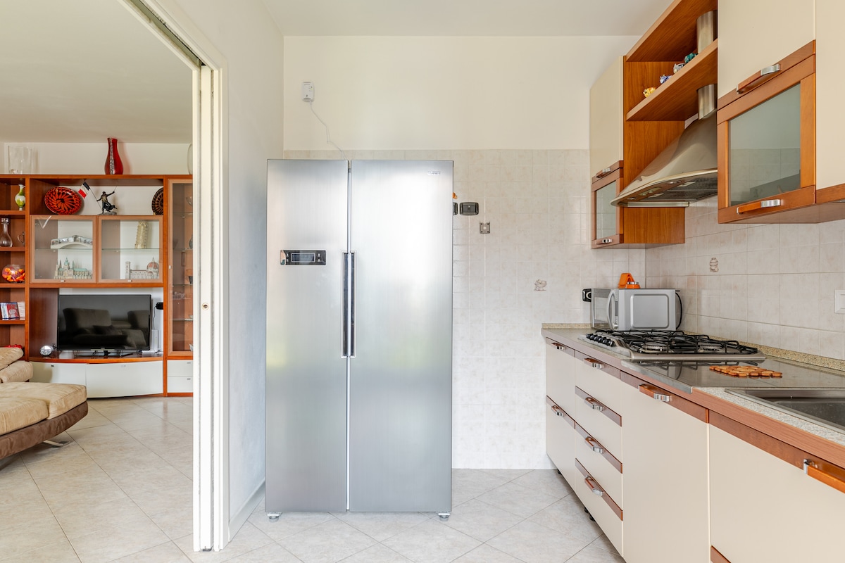 Vår lägenhet är stor (80 kvadratmeter) och ljus, med utsikt över inre trädgårdar och Molino Stucky. En underbar gemensam trädgård kommer att välkomna dig när du anländer. Lägenheten ligger på bottenvåningen med hiss. Den består av två ljusa och rymliga sovrum (ett dubbelrum och ett med enkelsängar), ett stort badrum med bad / dusch och tvättmaskin, modernt och funktionellt kök, matsal / vardagsrum med bäddsoffa, TV, WIFI.