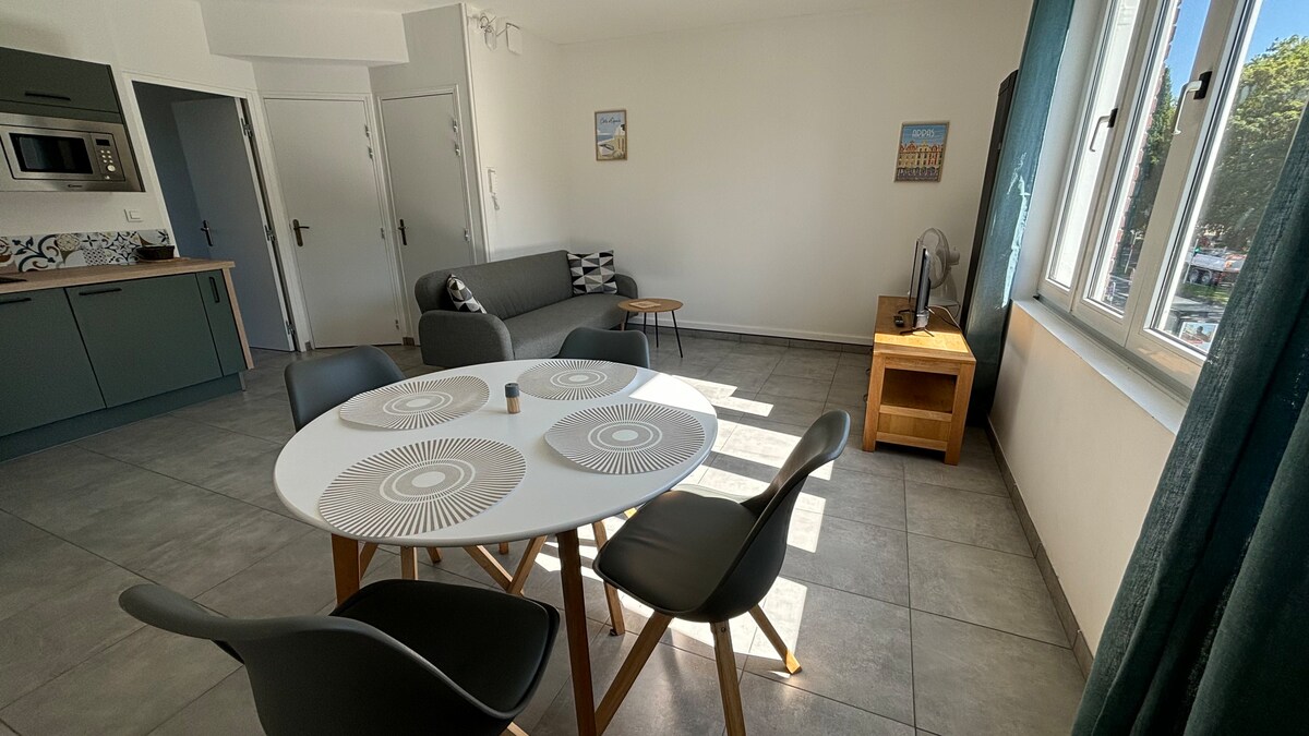 Trevlig liten ny studio för 1 person, på bottenvåningen på gatasidan, du kommer att uppskatta dess läge nära TGV tågstationen och universitetet bara 5 minuters promenad bort. På grund av dess storlek är den idealisk för 1 person, men kan vara lämplig för 2 personer för kortare vistelser.