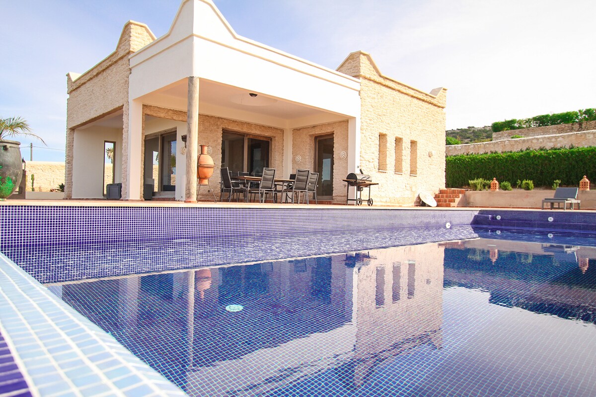 Sunset Moulay Villa ligger 25 minuter från Essaouira, det har en fantastisk utsikt över havet och solnedgången. Våra villor har en stor privat pool och en vacker trädgård samt tre sovrum, tre badrum och ett marockanskt bad. Om du är ute efter en lugn plats, perfekt för din semester, är vår villa det bästa stället för dig