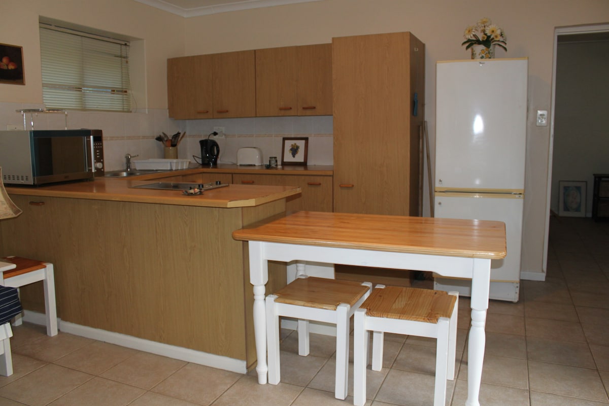 Kom och bo i vår fridfulla studiostuga högt uppe på Helderbergsberget omgiven av träd och hör ugglorna ropa när du somnar! Vacker ny stuga, med eget däck och trädgård och elegant möblerad för att uppfylla alla dina behov. Och nu med solenergi installerad (april 2023) har vi INGEN LOAD-SHEDDING! Vi har bytt ut ugnen och hällen mot en helgasspis så att alla apparater kan användas under strömavbrott!