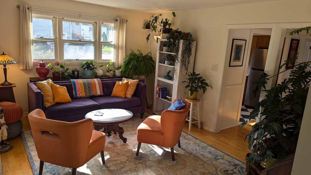 Vår fastighet ligger på en lugn gata i Burlingtons Old North End. Nyrenoverad gästsviten ligger ovanför vårt hem och är utrustad med egen ingång. Fönster västerut ger en hel del naturligt ljus. Delköket ligger i ett litet rum utanför sovrummet. Köket är utrustat med ett handfat, litet kylskåp och frys, brödrost, mikrovågsugn och en elektrisk vattenkokare. Privat badrum. Wifi tillhandahålls.