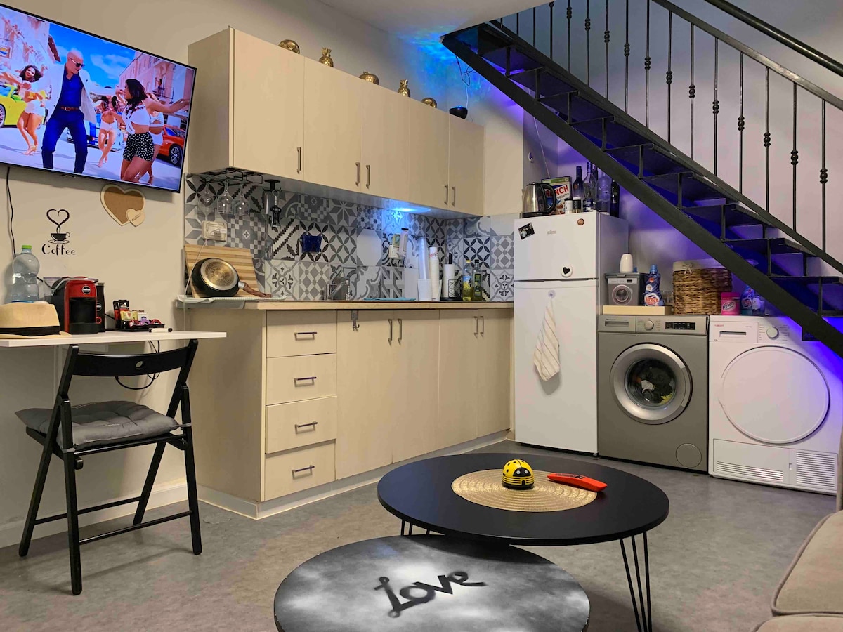 En ny och elegant semesterlägenhet mitt i staden ca. 8 minuters promenad till havet och strandpromenaden. Lugnt och mysigt ställe med egen parkering. Restauranger och kaféer i närheten, minimarknaden öppen dygnet runt Sovrum och vardagsrum lägenhet + söt trädgård, som inkluderar fullt utrustat kök, platt-TV med kabel, höghastighets-WiFi, elegant toalettdusch.