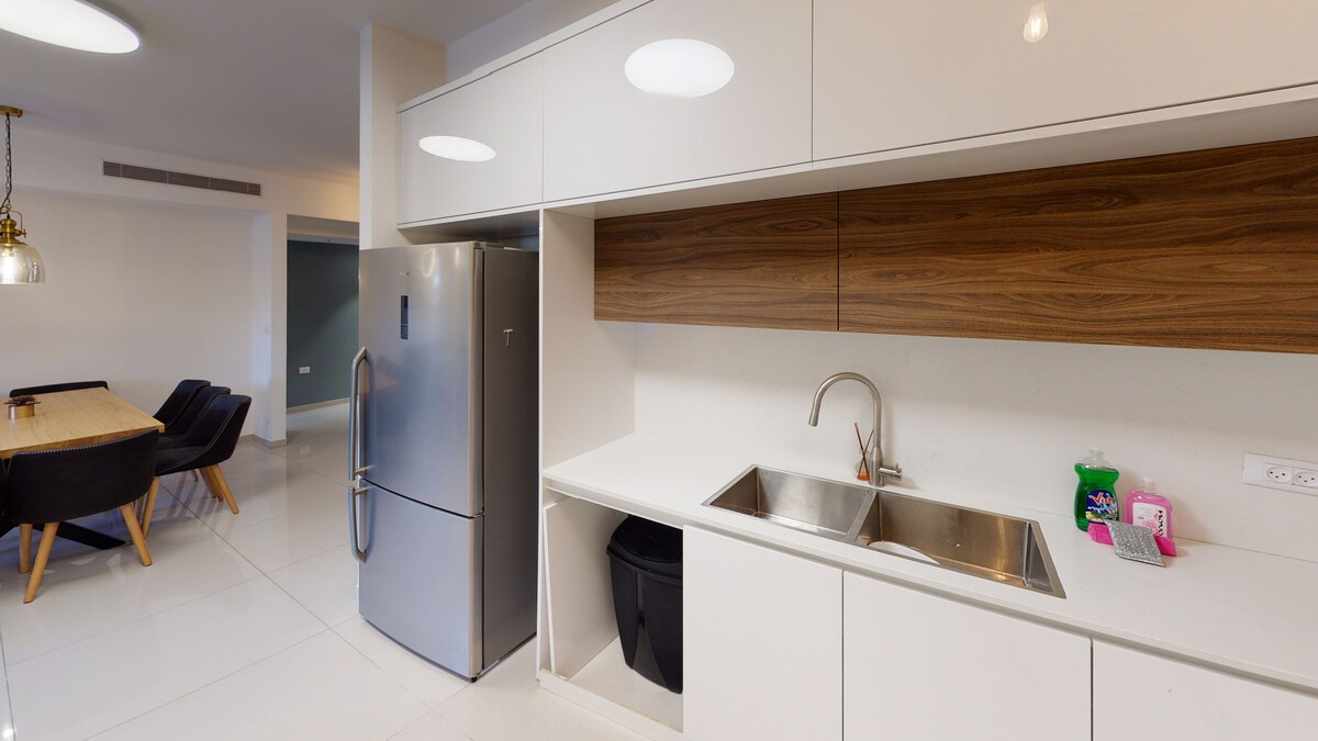 Beläget i hjärtat av Eilat, i det vackra Golf Residence Complex, är denna semesterlägenhet med 2 sovrum ditt hem hemifrån. Allt ligger utanför dörren, från stadens välkända sevärdheter till butiker och restauranger. Du är ett stenkast från Mall Shopping Center, och bara 5 minuters promenad från de extraordinära stränderna. Stor pool, privat parkering, gym på fastigheten. Din familj kommer att vara nära allt när du bor på detta centralt belägna ställe.