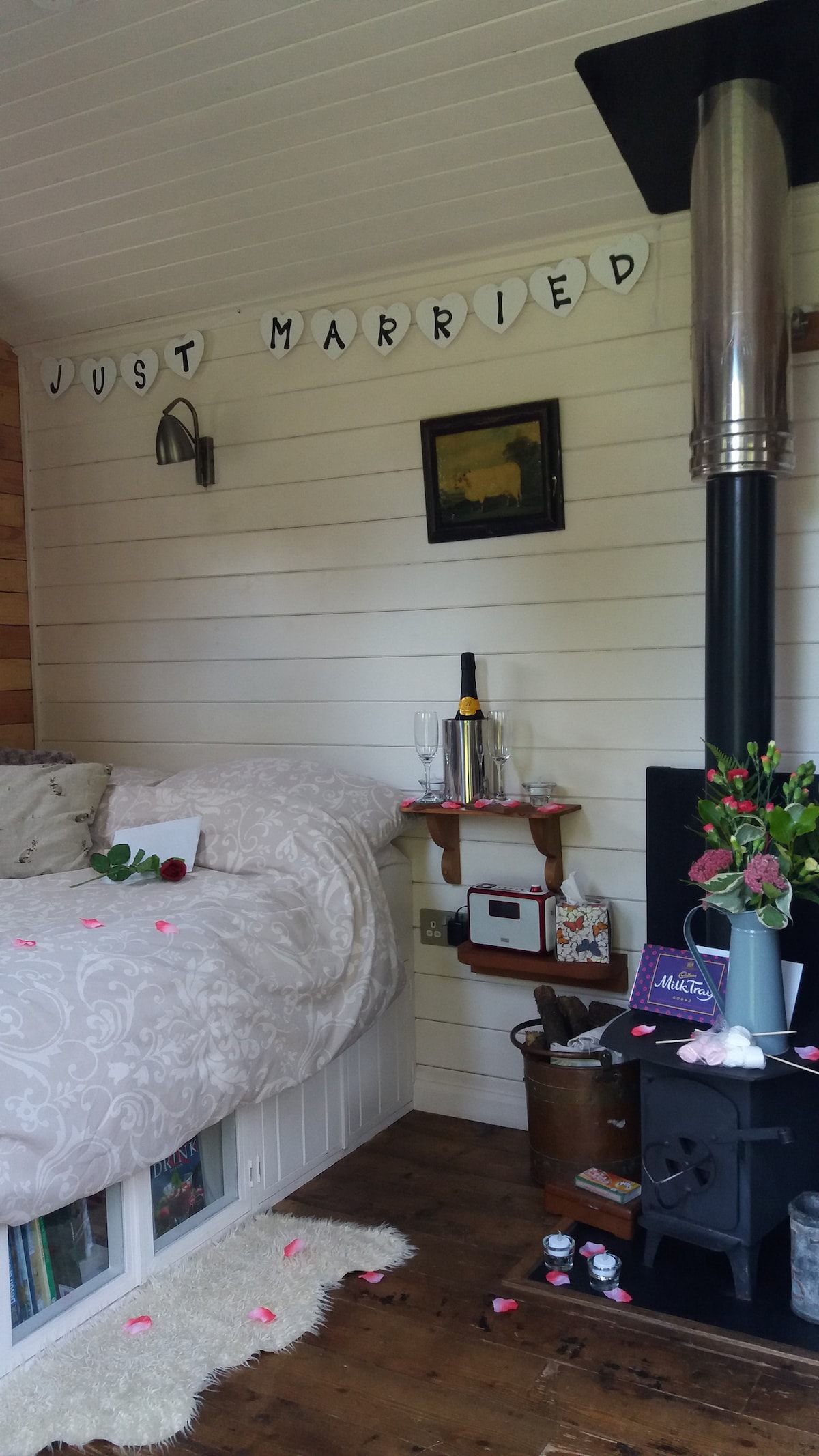 Idyllisk Shepherd Hut och läge, privat bubbelpool