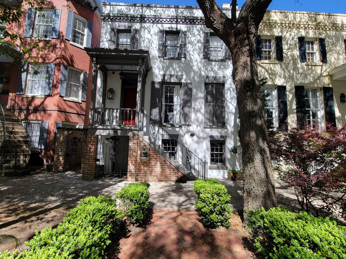 Denna lägenhet med 2 sovrum och 2 badrum är perfekt för vänner eller familjer som reser tillsammans och är en oöverträffad Savannah-upplevelse. Lägenheten ligger mitt emot ett av Savannahs ikoniska torg och ligger bredvid den mest charmiga vintagebokhandeln i staden. Gå enkelt till Savannahs restauranger, Forsyth Park och alla attraktioner i centrum. Nyligen renoverade, njut av marmorbadrummen med lyxiga Aesop tvålar, fristående badkar, fina Matouk sängkläder och ett fullt utrustat kök.