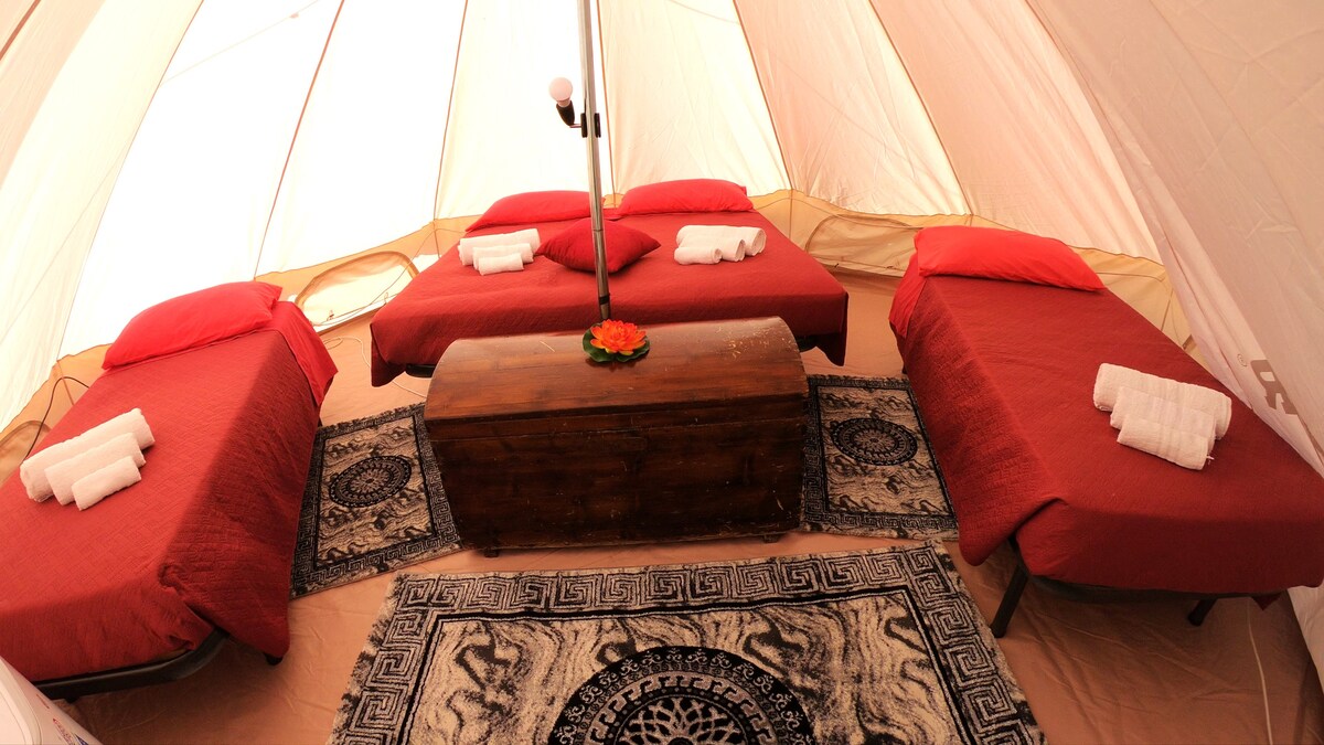 Glamping – Dubbelt tält + tält med 4 sovplatser
