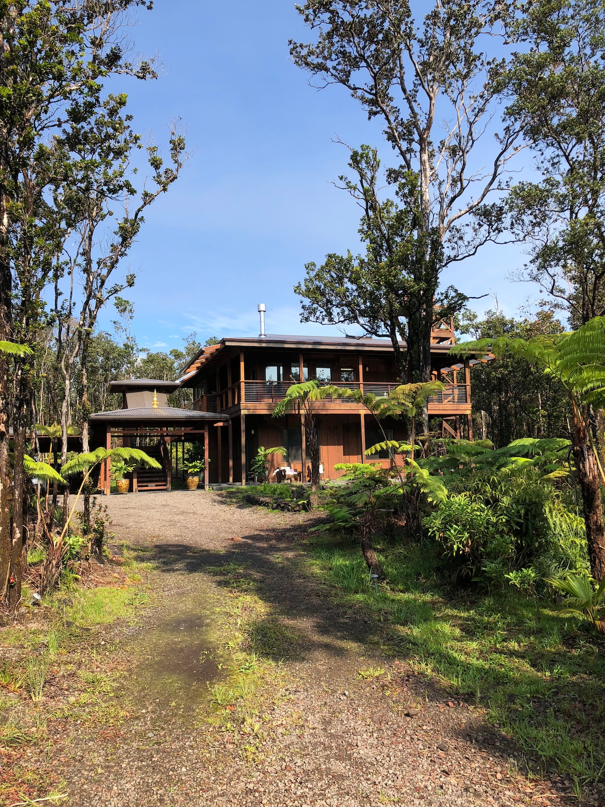 Beautiful two story home in middle of tropical rain forest only 3 miles to entrance of Volcano National Park. Each story is a separate home with separate entrance. Newly built by recently retired Dr of Chiropractic Stephen Tarek who quietly lives upstairs. This is good for security and he is also available for directions and tips.