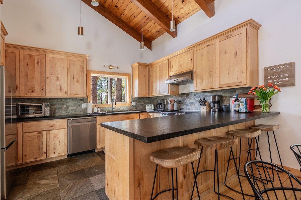 Välkommen till The Mountain Haus, av Modern Mountain Vacations! Vårt stora, delade hem gränsar till Tahoe Forest och ligger i det lugna Cold Creek Neighborhood. Endast 10 minuter från Heavenly Ski Resort, sjön och stränderna, plus sekunder till vandring. Komplett med två stora vardagsrum, 5 dubbelsängar, däck på alla nivåer, episk skogs- och bergsutsikt och ett fullt utrustat kök — din grupp kommer att älska det här. Bara utanför allfarvägen, men tillräckligt nära staden för att njuta av hela Tahoe!