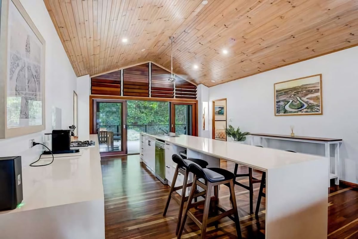 Dold bland en vävnad av grönska, en frodig, livlig oas. Bara 14 km från Mission Beach och 8 km från Woolworths, Wongaling, är vårt pensionat perfekt för att koppla av efter att ha utforskat vårt lilla paradis. Beläget på 2 hektar och avskilt från huvudhuset har det egen ingång. Fastigheten ligger på den vilda och ursprungliga Hull River. Med en båtramp och båtparkering som gränsar till sidoingången är det det perfekta navet för fiskeentusiaster. 30 min till Dunk Island.