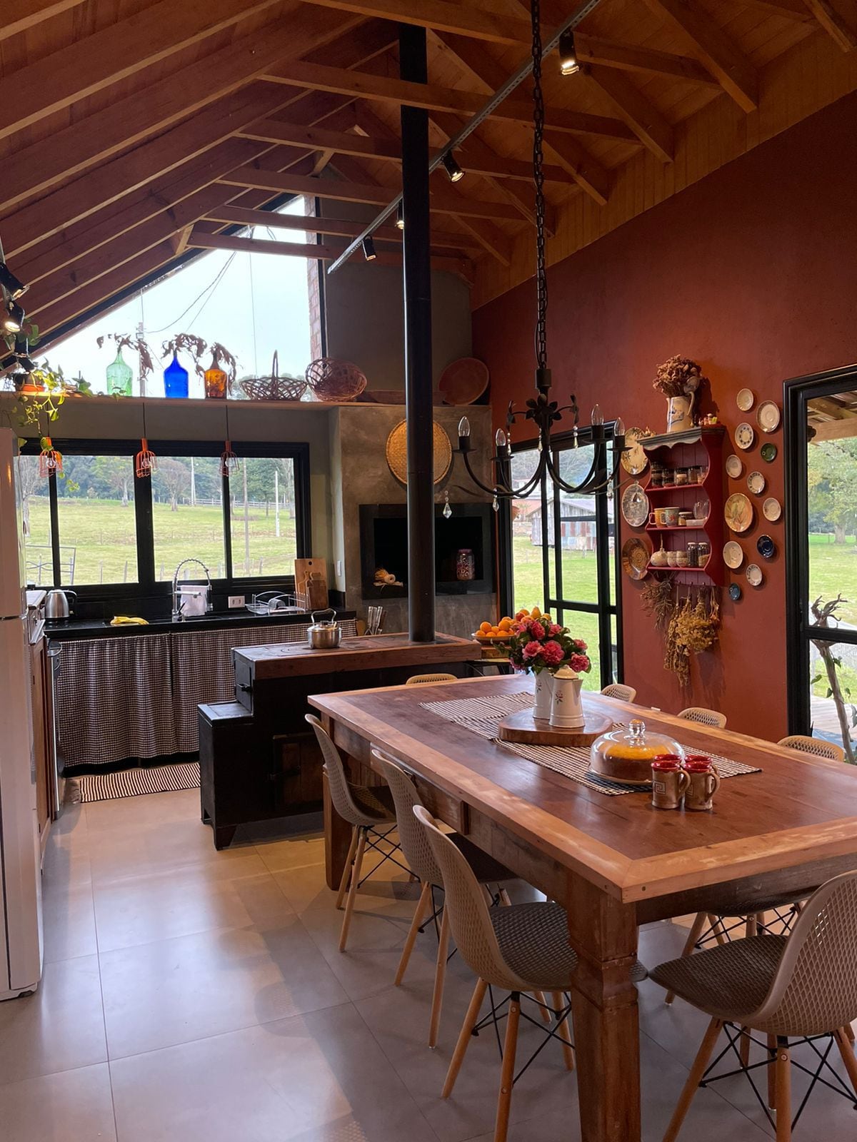 Lantstuga med öppen spis och utsikt över Serra Gaúcha