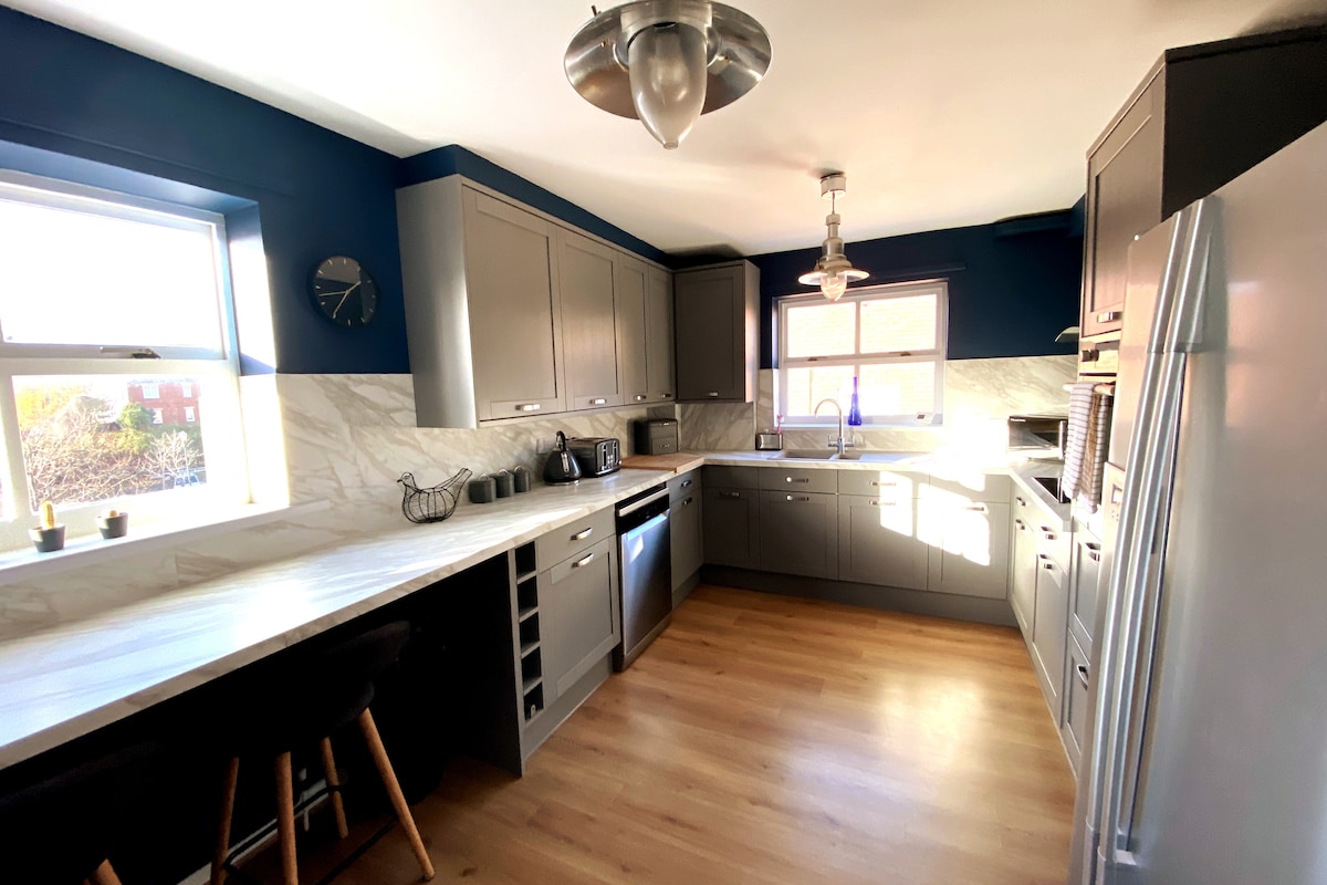 Stor rymlig lägenhet som består av två dubbelrum med mycket bekväma sängar, ett badrum med dusch och ett med ett separat badrum som har badkar och dusch. Handdukar, schampo osv. och hårtork ingår Loungen, matplatsen och det moderna köket är alla i ett stort öppet planerat utrymme och med all utrustning du kan behöva. Elegant inredd och ett stenkast från Gosforth High Street Gratis parkering med tillstånd under hela vistelsen Perfekt hem hemifrån