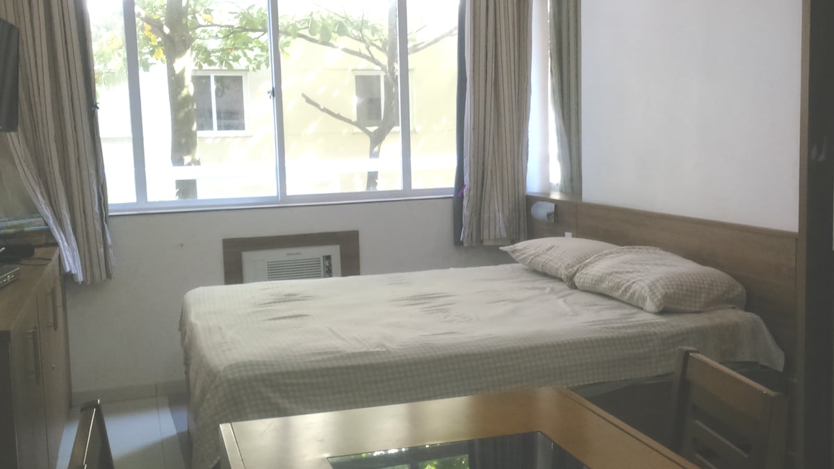 31m2 lägenhet av studiotyp, renoverad och möblerad, ett kvarter från stranden. Sovrum och vardagsrum (bänk för måltider och arbete, soffa och TV), utrustat kök, badrum, sovrum (väggmonterad luftkonditionering, dubbelsäng, garderob, ställning för långa kläder, spegel) 24-timmars portvakt, 12:e våningen, familjehus. Ett kvarter från Praia do Flamengo, nära tunnelbanan Largo do Machado, restauranger, biografer, museer, teater och allmän handel. Gäster kan kontakta oss via mobiltelefon och/eller e-post.