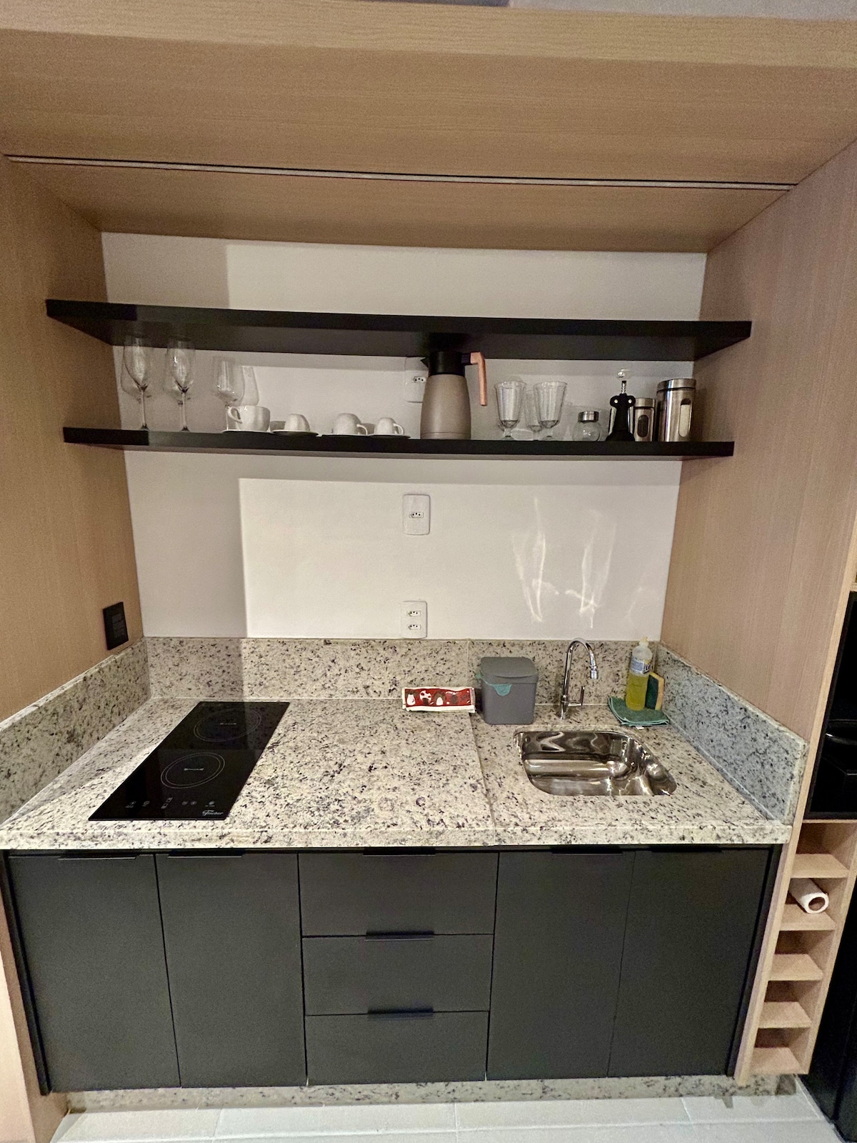 Rymligt lägenhetshotell, med vardagsrum, 1 sovrum, kök, komplett badrum, säng och soffa för 4 personer. Ljust, lugnt, med balkong och Split luftkonditionering. Garage, bastu, pool, städservice, 24h/7d concierge. Nära till tunnelbana, restauranger, teatrar, gym, köpcentra och Leblon beach. Rabatter som redan ingår: 1 vecka: 15% 1 månad: 30%. Kontakta oss om du vill veta mer. Vi vill gärna svara på dina frågor :)