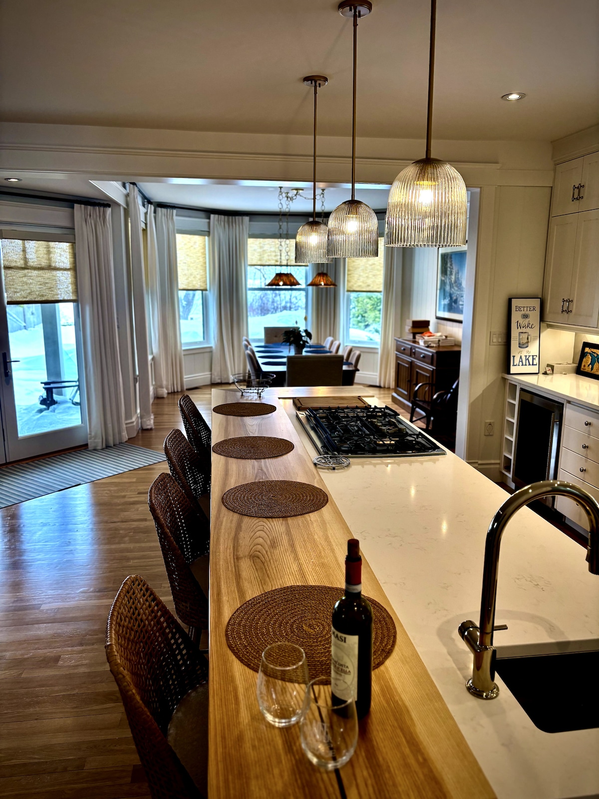 Stora gemensamma utrymmen och gott om naturligt ljus gör detta till ett tröstande utrymme. Bakåt till skogiga stigar, gångavstånd till allt, kom och njut av en långsammare mer avslappnad livstakt. På stranden, på tennisklubben, på floden, i skogen eller i stan. Eller häng bara med dina favoritpersoner på däck, den skärmade poarchen eller runt det stora bordet. Med ökad medvetenhet om rengöring och säkerhet följer vi Airbnbs utökade rengöringsrutin, som utvecklades med vägledning från experter.