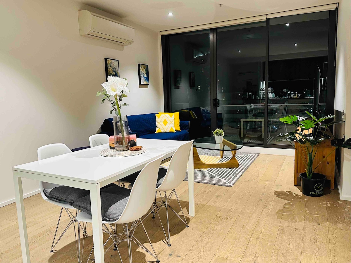 Bo i detta hem i centrum, så att din familj kan njuta av allt. Adressen är 883 Collins St, Docklands. Beläget precis vid vattnet, bara några minuter från staden, har denna helt nya 2BR & 1BATH Free Carpark lägenhet en balkong vid stranden med fantastisk utsikt över Yarra River, CBD och Victoria Harbour.Det är centralt beläget i Docklands affärsdistrikt med direkt tillgång till gratis spårvagnsstation, Woolworth, Costco, och många butiker, kaféer och restauranger. Southern Cross Station (Skybus station) och Etihad Stadium ligger också inom gångavstånd. Njut av de bästa faciliteterna gratis, inklusive uppvärmd inomhuspool, fitness.