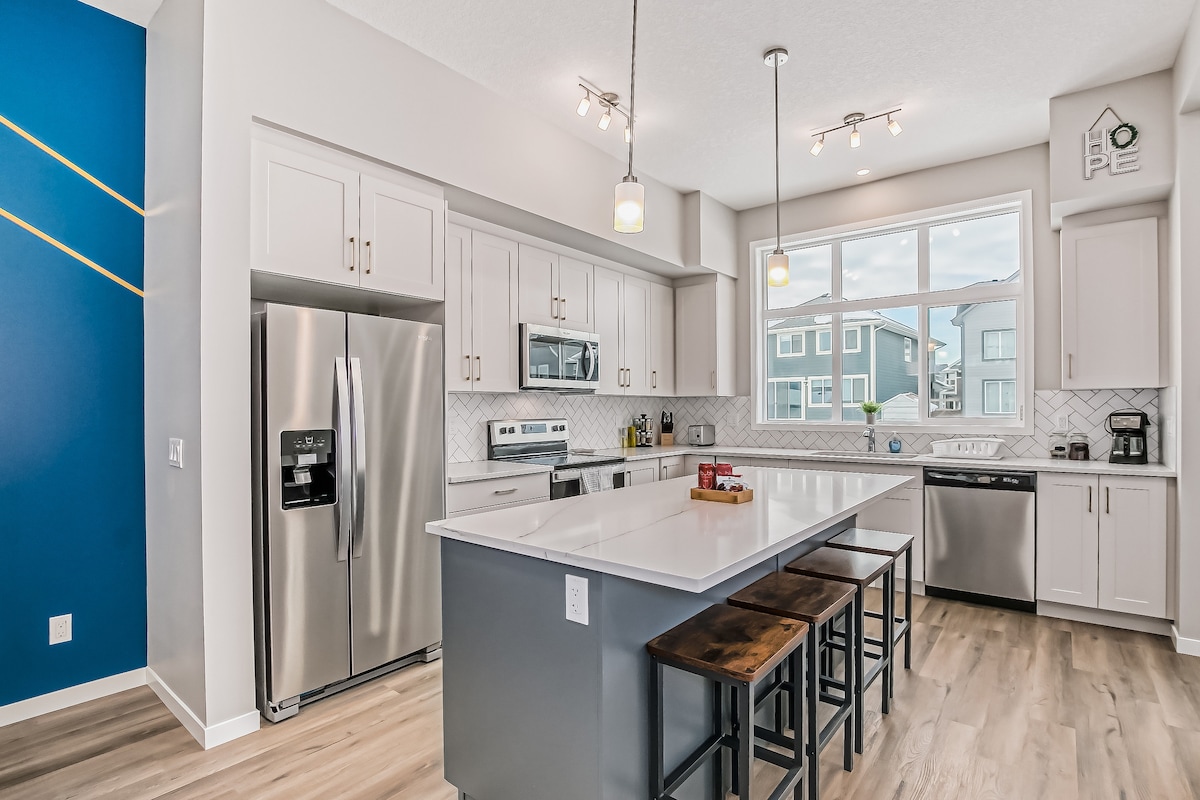 Denna underbara pärla inbäddad i hjärtat av Calgarys främsta semesterort: Mahogany! Direkt tillgång till busslinjer! Ljus & ljus, arbeta hemifrån i mysigt arbete från hemmakontor. Välutrustat hem har 2 familjerum med separat TV, 4 sovrum med superbekväma minnesskummadrasser och stora vackra fönster. Nära till %{smart 's SteakHouse och Analog Coffee! Ta en promenad för att se Mahogany Wetlands prakt eller bege dig till vattenparken på världens största YMCA bara några minuter bort!
