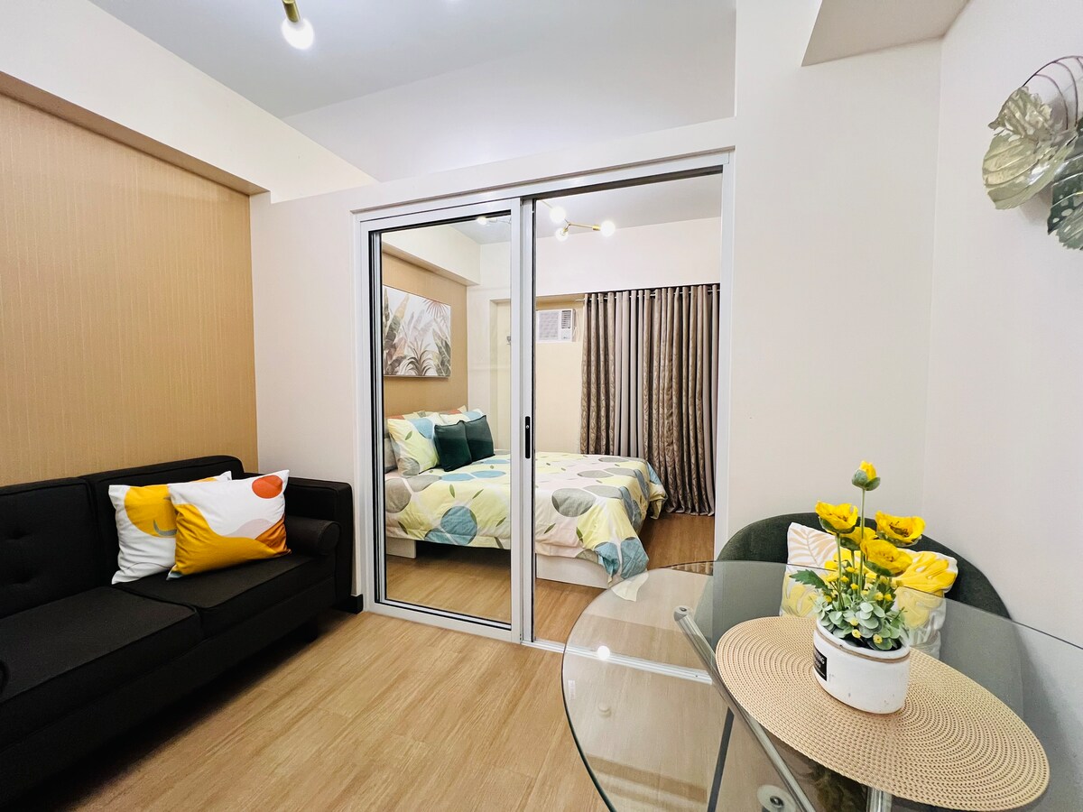 ÖVER 6 ÅR SOM EN BETRODD AIRBNB-SUPERHOST, MED ÖVER 300 5-STJÄRNIGA OMDÖMEN FRÅN NÖJDA GÄSTER. Njut av lyxigt boende i denna moderna 1BR-enhet med balkong i Quezon City, komplett med ett kök för matlagning och matlagning. Få tillgång till SM North EDSA Mall via en säker täckt brobana, bara 5 minuter bort. !!!!!! Innan bokning inom 2 dagar från incheckning, särskilt på söndagar, kan tillgången försenas på grund av stängning av kontoret. Skicka ett meddelande till oss för att bekräfta tillgänglighet.