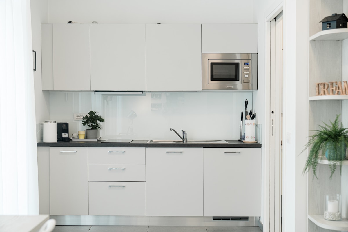 Lägenhet med ett sovrum för upp till 4 personer på ca 45 m². Sovrum med dubbelsäng och bäddsoffa i vardagsrummet. Komplett badrum med stor dusch, fullt utrustat kök med vitvaror (alla utom ugn och diskmaskin) och köksredskap. 43" LG Smart TV i vardagsrummet och 32" LG Smart TV i sovrummet. Gratis höghastighets Wi-Fi-anslutning. Parkeringsplats i själva byggnaden, direkt tillgång med hiss (15 € / natt) på begäran.