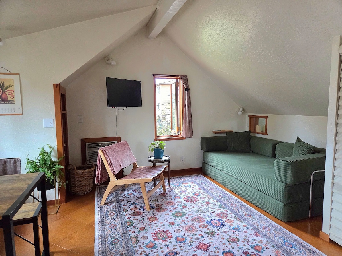 Beläget i hörnet av historiska 6th och G Street i centrala Grants Pass, är detta ett sovrum loft gångavstånd till restauranger, shopping och underhållning. Loftet har ett öppet koncept sovrum (inga skiljeväggar)och ett öppet koncept kök och vardagsrum, perfekt för underhållning. Hela utrymmet är tillgängligt för gästers användning. Loftet ligger på andra våningen, ovanför kommersiellt utrymme, endast tillgängligt via trappa. Inga städavgifter tillagas.