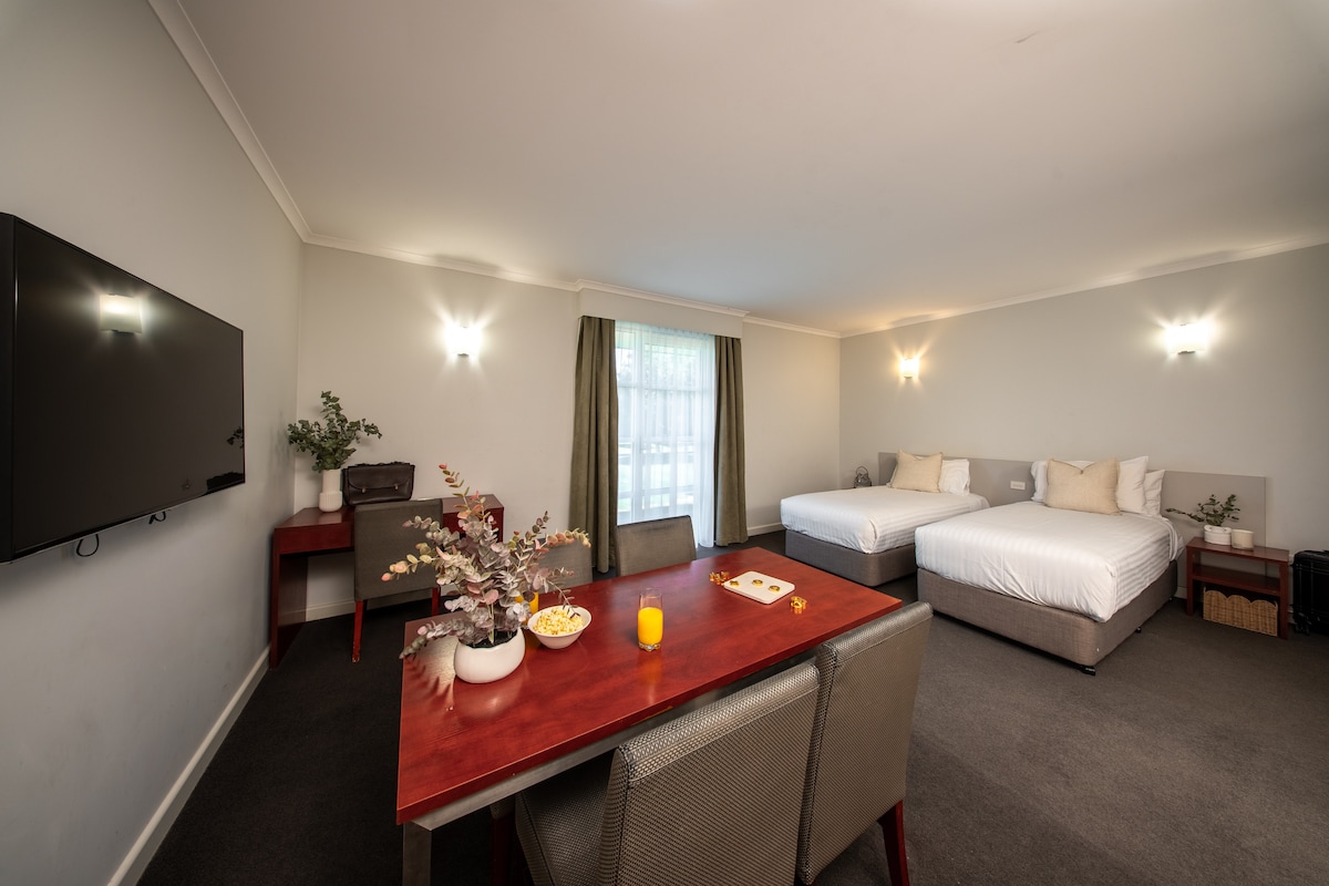 Welcome to the Interconnecting Studio Apartments at Punthill Tuggeranong, this innovative accommodation combines two studio apartments, providing a flexible and spacious living experience. Each studio is thoughtfully designed with contemporary furnishings, a fully equipped kitchen, in-room laundry facilities and a cosy sleeping area for ultimate relaxation. Whether you’re travelling with family or friends, this room offers privacy and convenience while staying connected.