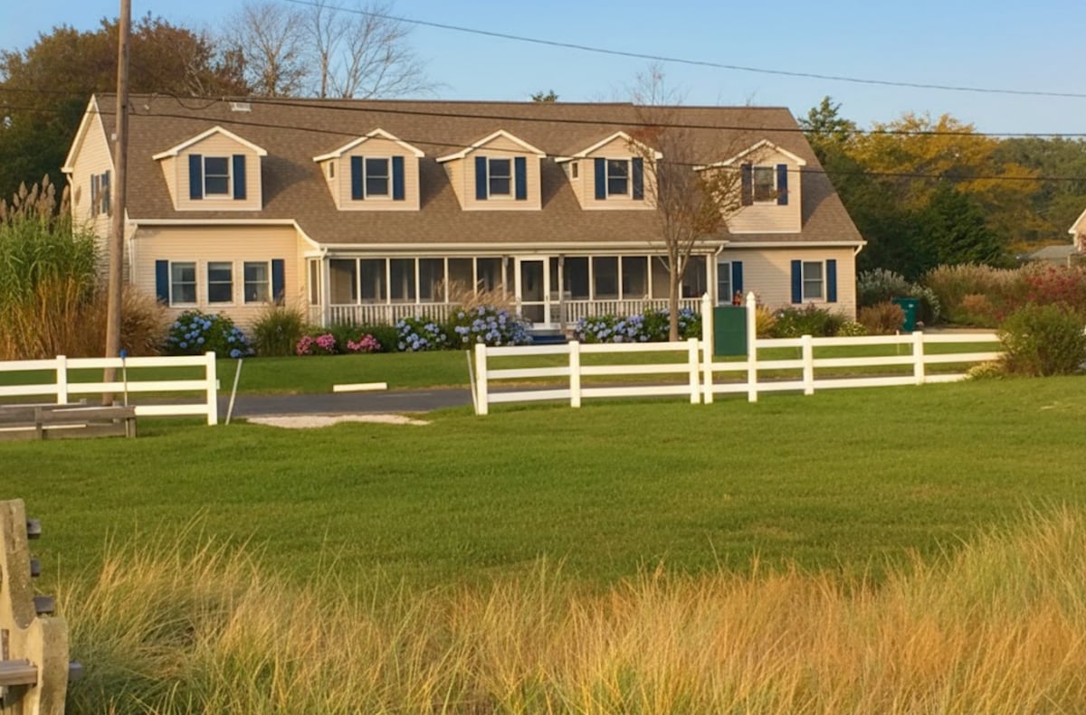 Detta charmiga boende vid vattnet är den idealiska tillflyktsorten för den aktiva familjen med Hamptons "största naturliga" saltvattenpool "(Peconic Bay) bara några steg bort. Detta boende rymmer enkelt 7 - med 3 sovrum och 3 separata sovstugor för barn. Du kan hoppa på vår standup paddleboard direkt från vår privata brygga, jogga längs breda sträckor av stenstrand, ha en simtävling till vår flytande simplattform eller helt enkelt koppla av i hängmattan. 2 badrum inomhus och 1 privat utomhusdusch,