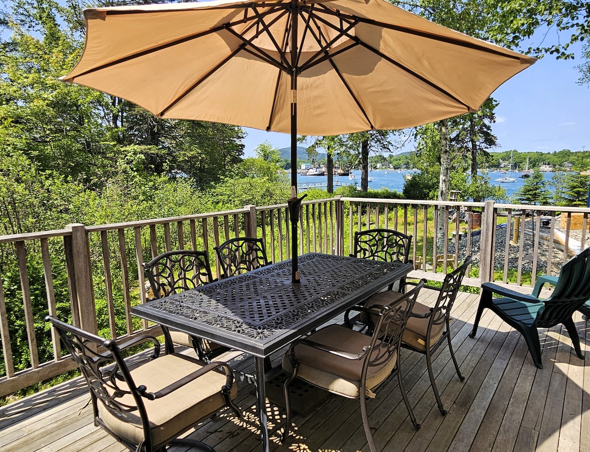 Vår mysiga familjestuga på den "lugna sidan" av Mount Desert Island har panoramautsikt över Southwest Harbor och Cranberry Islands. Se tidvattnet och båtarna komma och gå från din säng! Högvattenstänk under det cantileveredäck. Pittoreska shopping och restauranger ligger bara 3/10 mil längs en trottoar. Flera åtkomstpunkter till Acadia National Park mindre än 8 miles bort; centrala Bar Harbor ligger 25 minuters bilresa bort. Stugan är idealisk för par eller familjer med övervakade barn.
