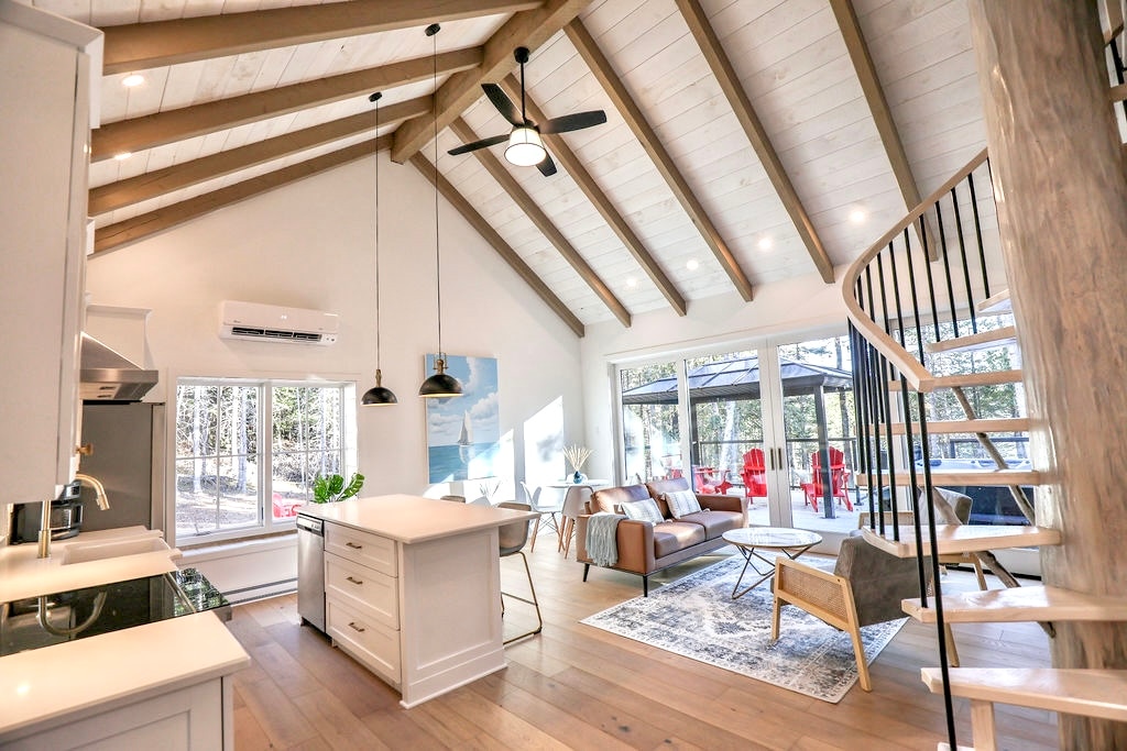 Fly till The Loft, en vackert designad tillflyktsort som erbjuder den perfekta semestern! En elegant inredning som har allt du behöver. Kliv in i bubbelpoolen under en filt av stjärnor. Öppen och luftig layout är utformad för att få dig att känna dig som hemma, med varje detalj för att säkerställa att din vistelse är perfekt. The Loft är omgiven av natur och erbjuder lugn avskildhet och tillgång till pittoreska stigar för ATV- och skoterentusiaster, njut av skönheten i den närliggande bäcken, eller helt enkelt njut av lugnet och friden.