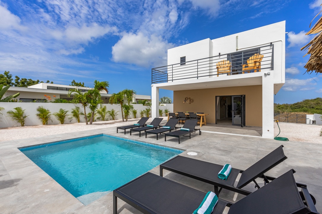 Vår moderna och lyxiga bungalow med ett sovrum, som ligger bara 5 minuters bilresa från Jan Thiel Beach, erbjuder allt du behöver för en avkopplande vistelse. Bungalowen är inredd med en charmig Ibiza-inspirerad design och har ett rymligt sovrum, ett lyxigt badrum och ett fullt utrustat kök. Koppla av i den vackra uteplatsen med din egen privata pool. Det fridfulla läget, i kombination med alla moderna bekvämligheter, gör detta till det perfekta boendet för att njuta av det bästa av Curaçao.