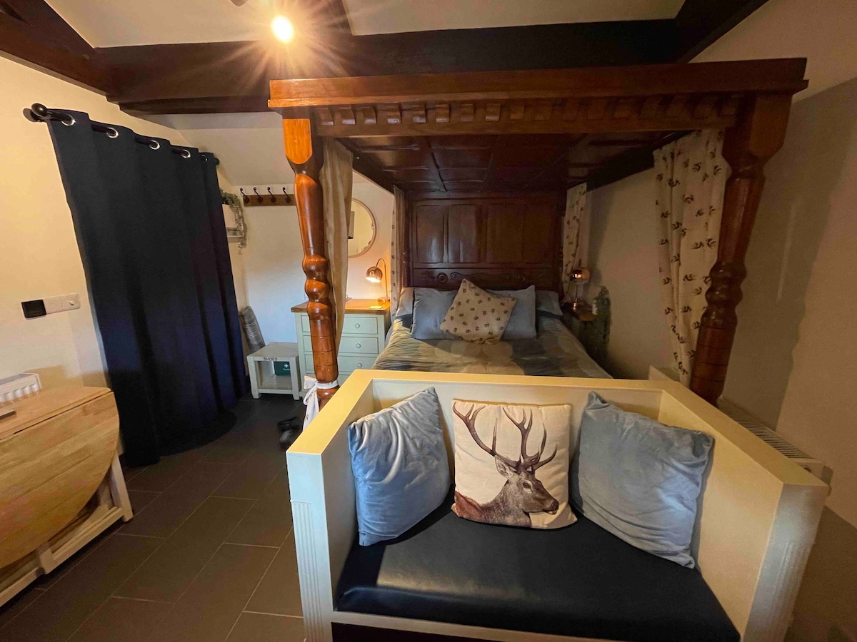 Hayfield View studio flat är en lägenhet på första våningen med svepande utsikt över landsbygden, fylld med alla bekvämligheter du kan behöva för en lyckad semester med självhushåll. Laddare för elbil tillgänglig. Den har modern inredning med en lantlig känsla och är en mysig liten tillflyktsort, perfekt för promenader på landet eller cykelsemestrar men också inom räckhåll för närliggande attraktioner och bekvämligheter. Vi välkomnar en liten hund att bo i studion gratis. Två hundar kan accepteras. Kontrollera med oss innan du bokar.