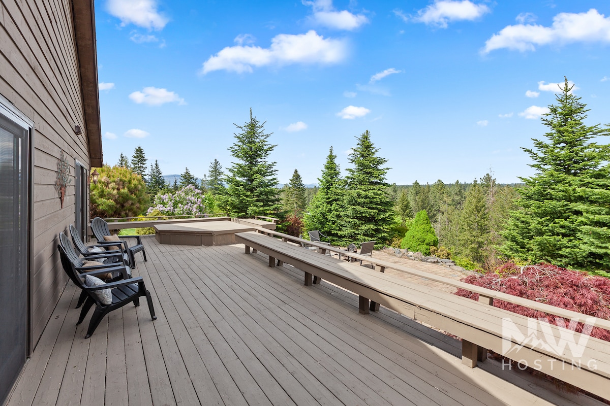 1200 kvadratmeter öppet utrymme att breda ut sig på. Enormt däck på andra våningen med fantastisk utsikt. MYCKET privat inhägnad uteplats med jacuzzi. Utomhusdusch (säsongsbetonad). Nära flygplatsen, underhållning och centrala Spokane. Nya mörkläggningspersienner på varje fönster. Dedikerat arbetsutrymme (vid behov). Perfekt för vistelse, semester, arbetsresa, weekendresa. nära 2 kasinon, flygplats, och mindre än 10 minuter till centrum från dörren