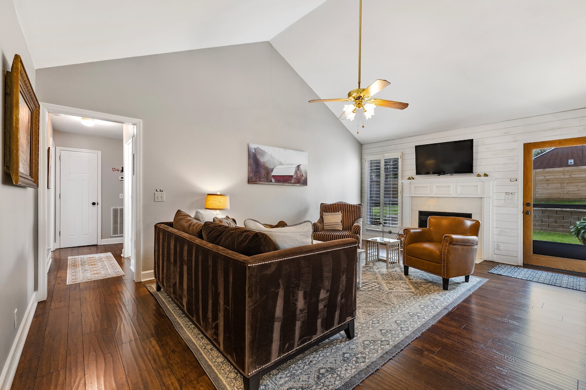 Kliv in i hjärtat av livet på landet i vår Country Music Cottage – en charmig tillflyktsort med ett sovrum och ett badrum på en pittoresk gård. Oavsett om du är en countrymusikentusiast eller helt enkelt letar efter en fridfull, rustik tillflyktsort erbjuder denna mysiga stuga en perfekt blandning av komfort, stil och lantlig charm. Med vacker utsikt över betesmark, tillgång till en eldstad och de lugnande ljuden från landsbygden kommer du att känna dig som hemma i denna sydstatsinspirerade tillflyktsort. 10 minuter till centrala Columbia.